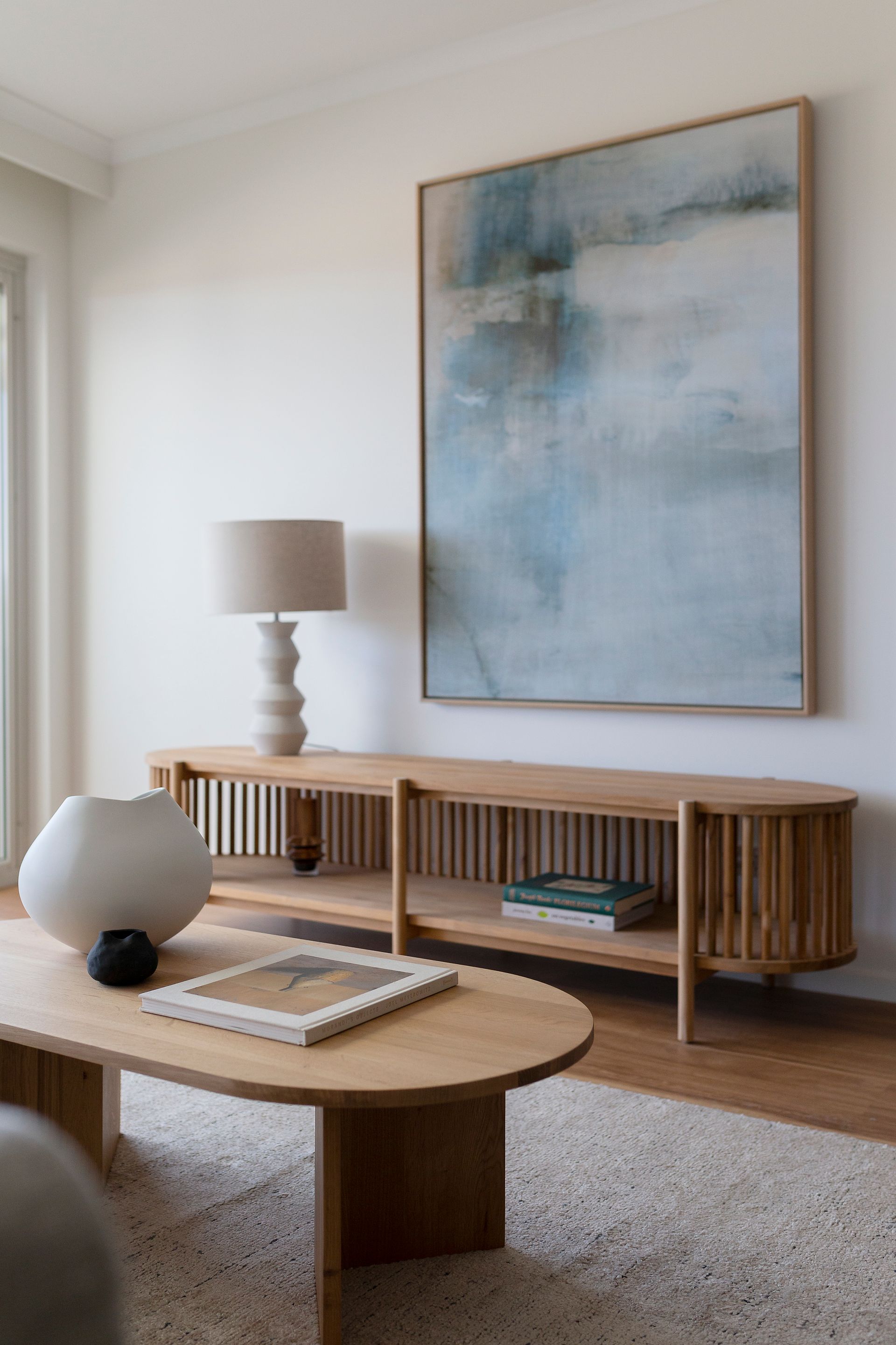 Layering of carefully selected pieces to fill the space allowed buyers to envisage how they can use their new homes.